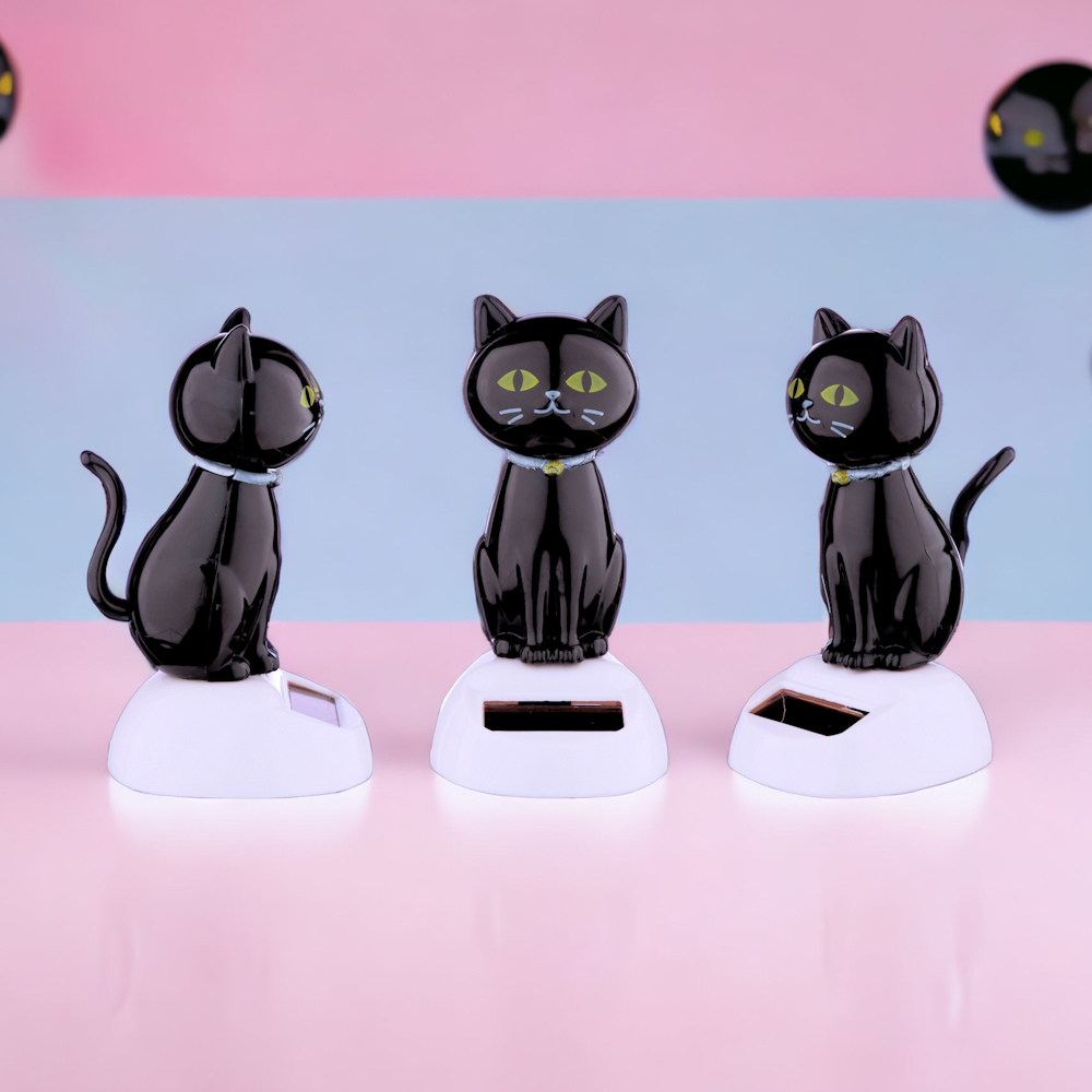 Figurina bobblehead “Lucky Black Cat” se mișcă grație energiei solare, aducând viață și dinamism oriunde alegi să o plasezi.