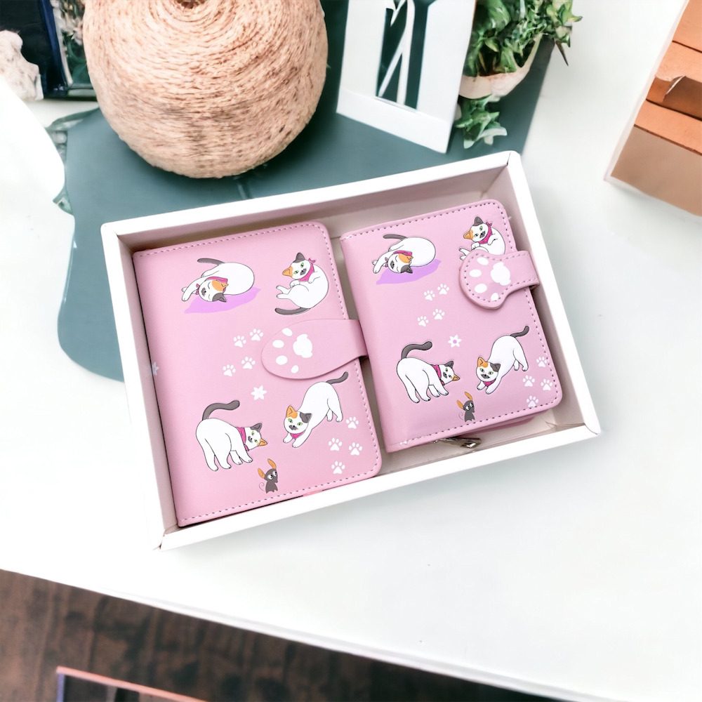Setul cu agenda si portofel reprezinta cadoul perfect pentru o domnisoara iubitoare de pisici.
