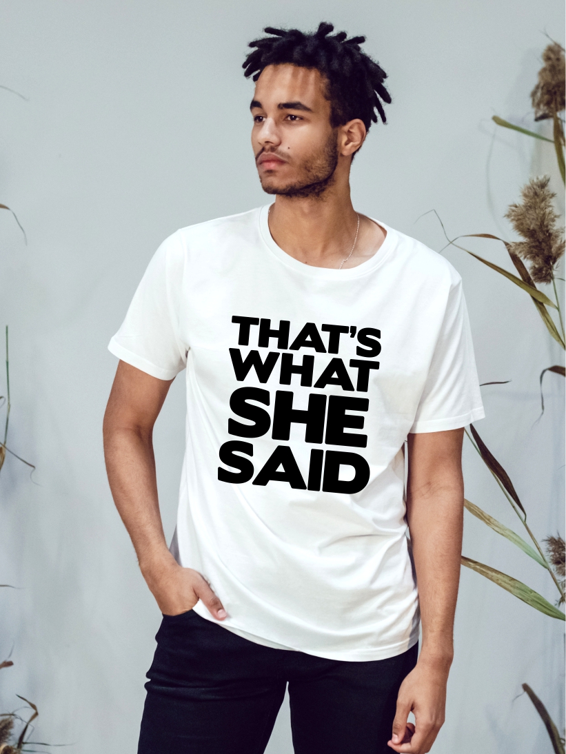 Detalii: Imprimeu mesaj “That’s What She Said”