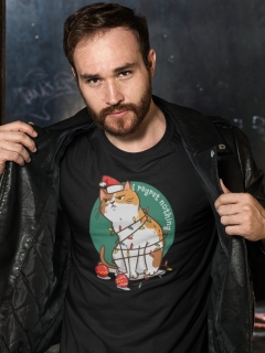 Adăugați un strop de veselie sărbătorilor cu acest tricou unic, ce îmbină dragostea pentru pisici cu spiritul festiv!