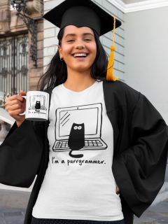 Detalii imprimeu: “I’m a Purrgrammer”.